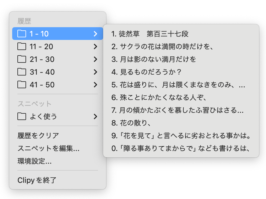 Clipy (フリップコピー履歴ツール)