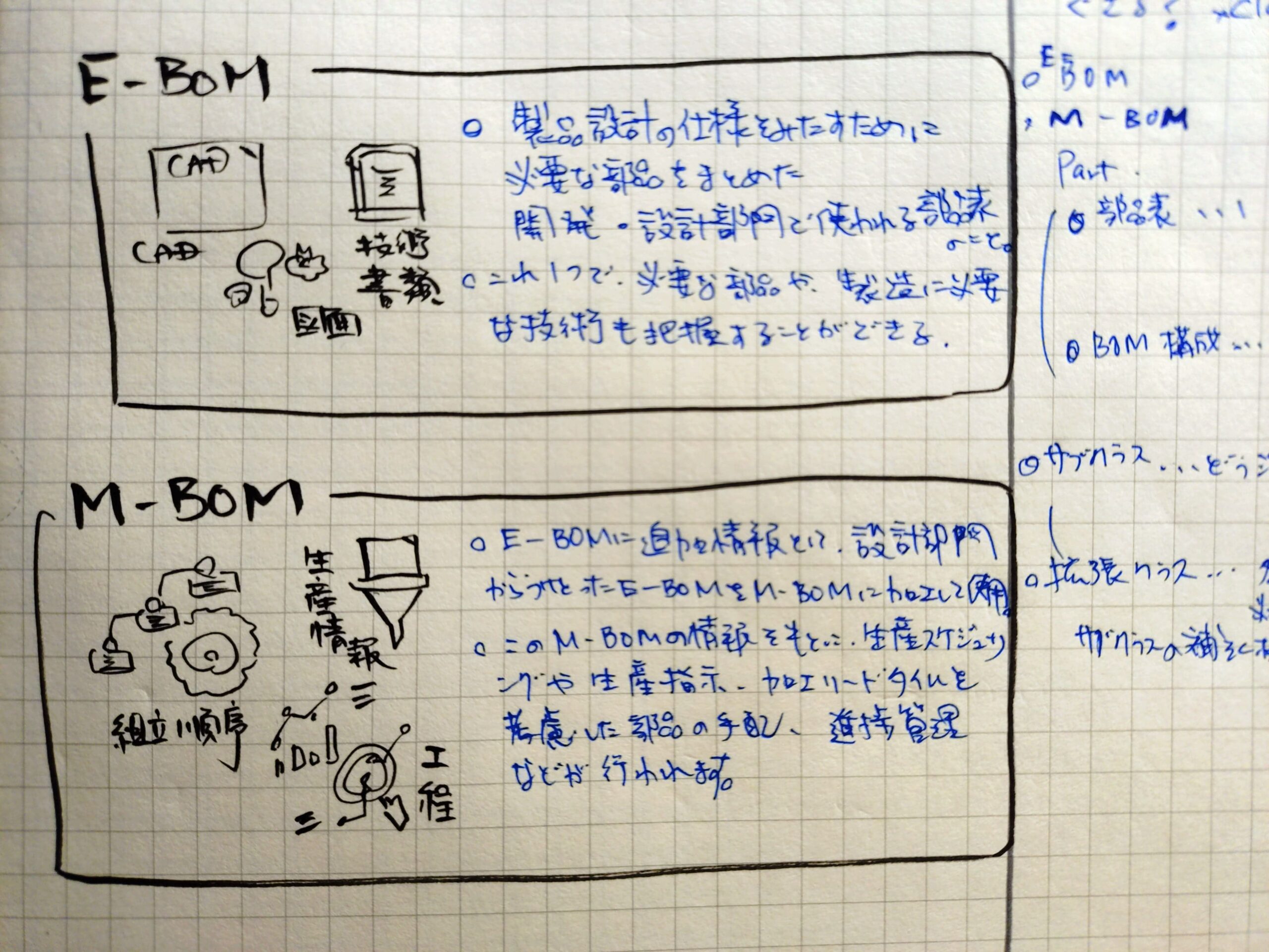 頭に「E-」とつきましたが、業務の目的によってBOMにも様々な種類があるようです。