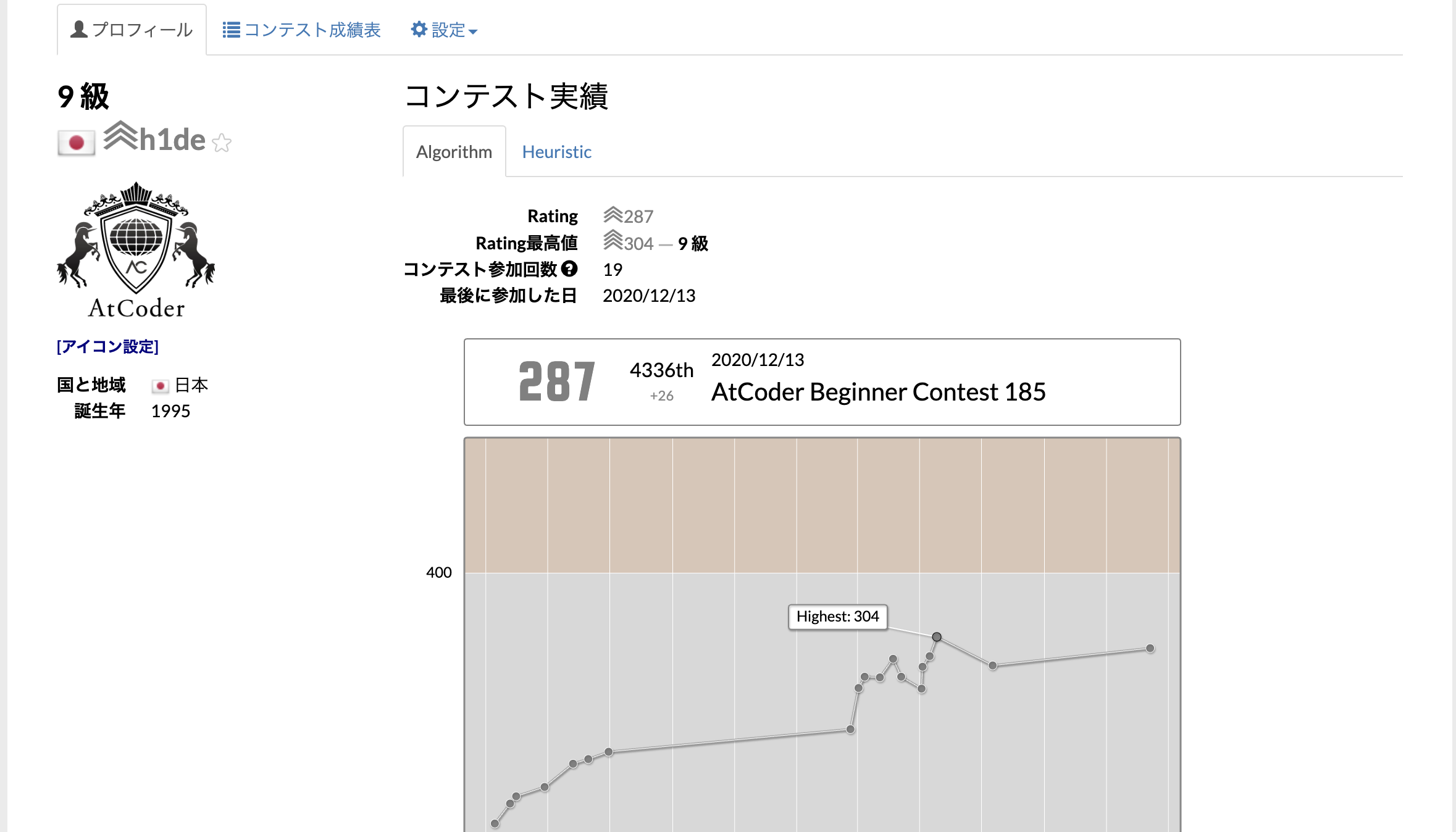 AtCoderのスコアでは、底辺の灰色コーダー。。。