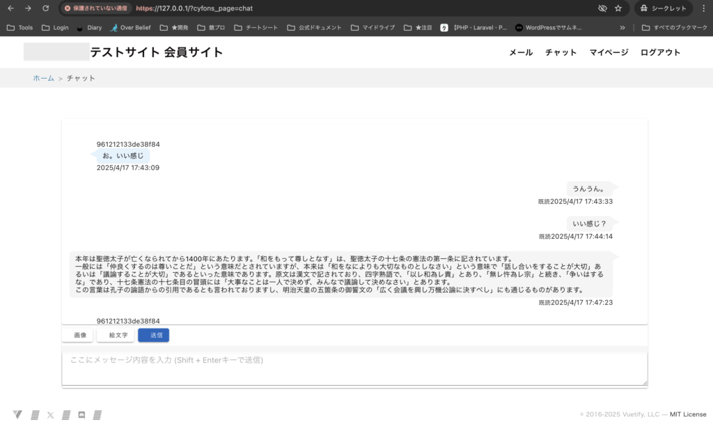 最近は、WordPressにVue.jsでチャットルームの実装をしています。