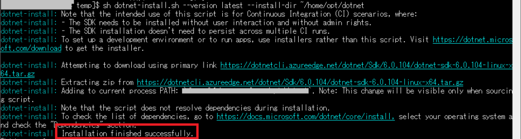 「opt/dotnet」ディレクトリを作り、そこへインストールしてます。